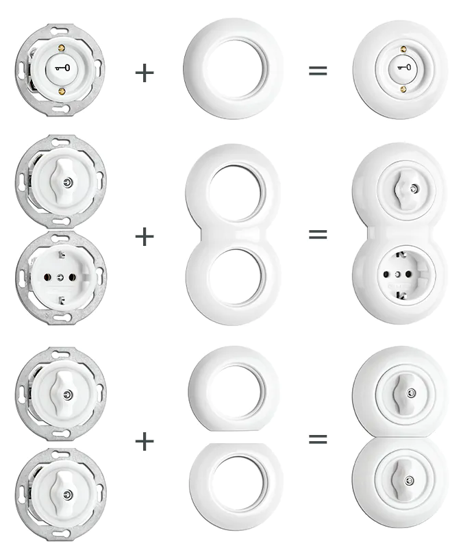 Toepassing: voor het veilig en volledig afdekken van porselein inbouw schakelmateriaal: Modelreeks Jaren ’20