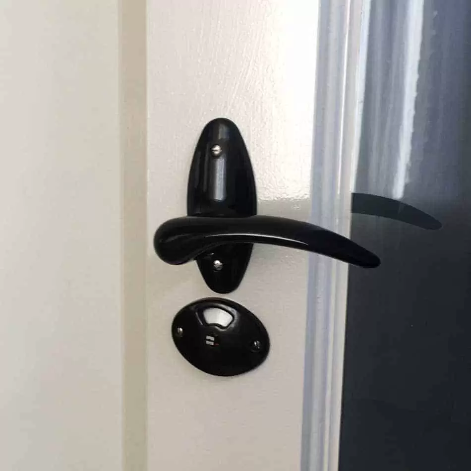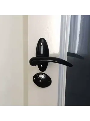 Deze bakeliet deurkruk inclusief patentrozet is onze absolute topper! Perfect gepolijste afwerking, losse kruklagers en messing vernikkelde patentschroeven voor een solide bevestiging. Made in Holland!