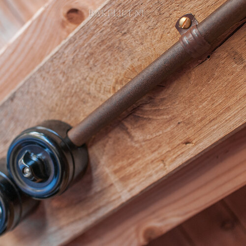 Bakeliet is een hittebestendig materiaal dat in de eerste helft van de 20e eeuw veel werd gebruikt voor schakelmateriaal. Onze retro bakelieten draaischakelaars combineren de authentieke charme van de jaren ’30 met moderne veiligheidseisen en voegen een nostalgische sfeer toe aan elk interieur.