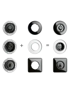 - Materiaal & samenstelling: basiselement + centraalplaat en draaiknop van zwart bakeliet