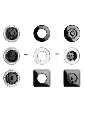 Samenstelling: basiselement van porselein + centraalplaat en drukknop van bakeliet
