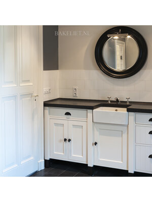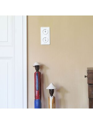 Dit rechthoekige afdekraam zorgt voor een nette en veilige afwerking van retro bakeliet schakelmateriaal. Dankzij de vorm biedt het meer afdekking dan ronde modellen, ideaal wanneer je de muur al netjes hebt afgewerkt en niet meer wilt bijwerken.