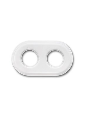 Porseleinen dubbel afdekraam voor FONTINI-schakelmateriaal. De brede diameter dekt twee inbouwdozen ruim af. Geschikt voor opbouw: bestel twee montageringen voor directe wandmontage, of twee adapters voor montage op twee inbouwdozen.