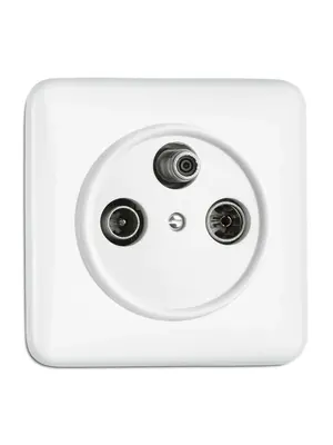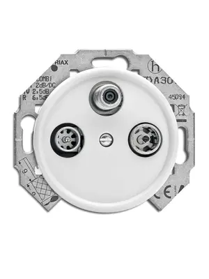 Eind wandcontactdoos voor doorgifte satelliet, radio en TV signaal. Kan gebruikt worden als enkele aansluiting voor satelliet tuner, maar ook in combinatie met een schakelbox.