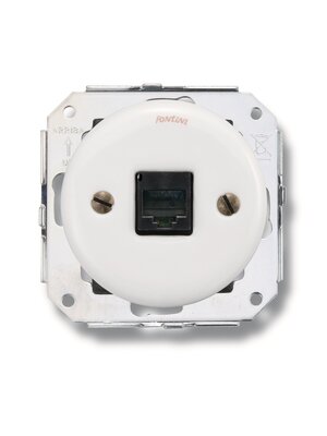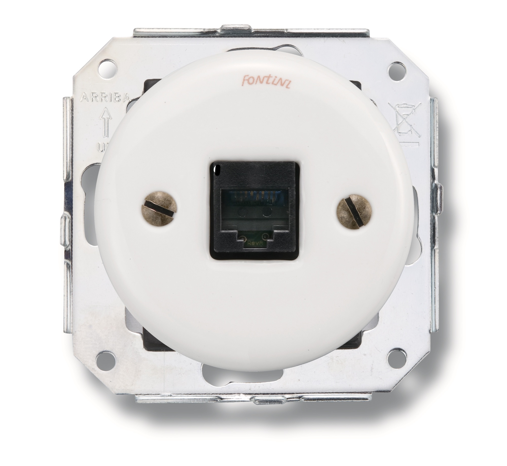 Porselein Cat6 wandcontactdoos voor doorgifte van data / telefoon. Geschikt voor RJ11 als RJ45 aansluiting.