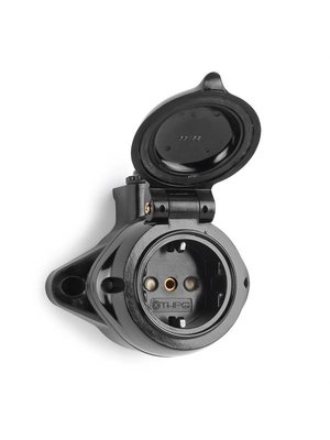 Specificaties wandcontactdoos (stopcontact) spatwaterdicht zwart bakeliet opbouw