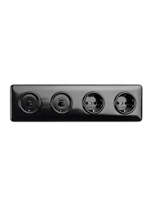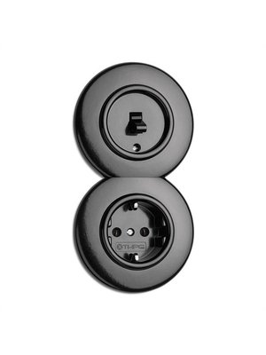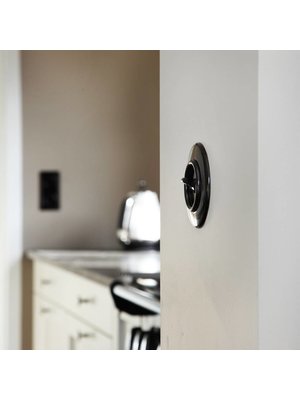 - Materiaal & samenstelling: basiselement + centraalplaat en tuimelknop van echt zwart bakeliet